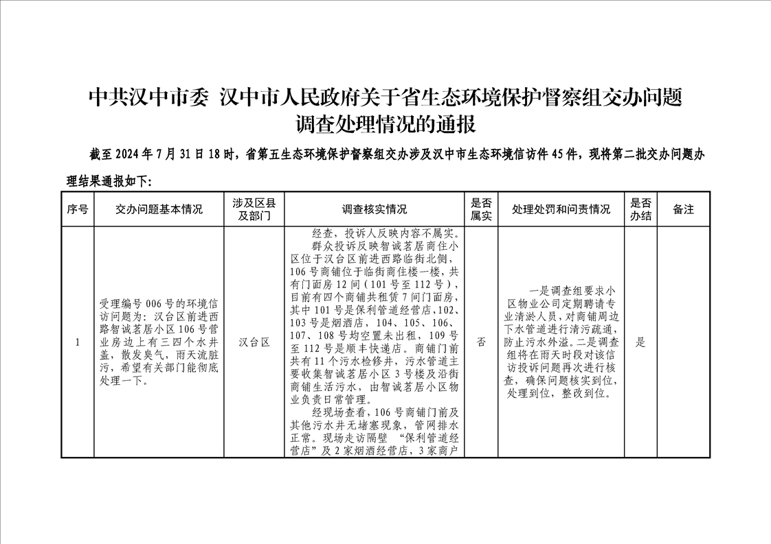 中共汉中市委 汉中市人民政府关于省生态环境保护督察组交办问题调查处理情况的通报(第二批)
