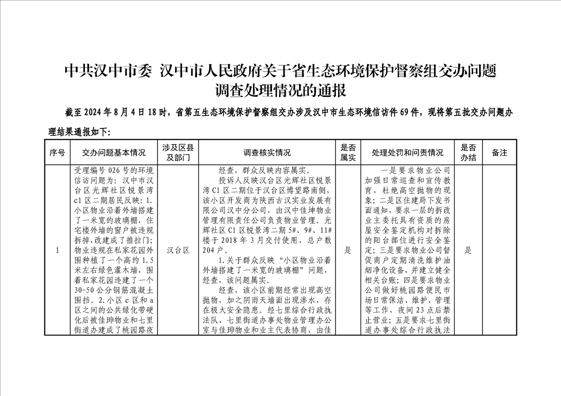 中共汉中市委 汉中市人民政府关于省生态环境保护督察组交办问题调查处理情况的通报(第五批)