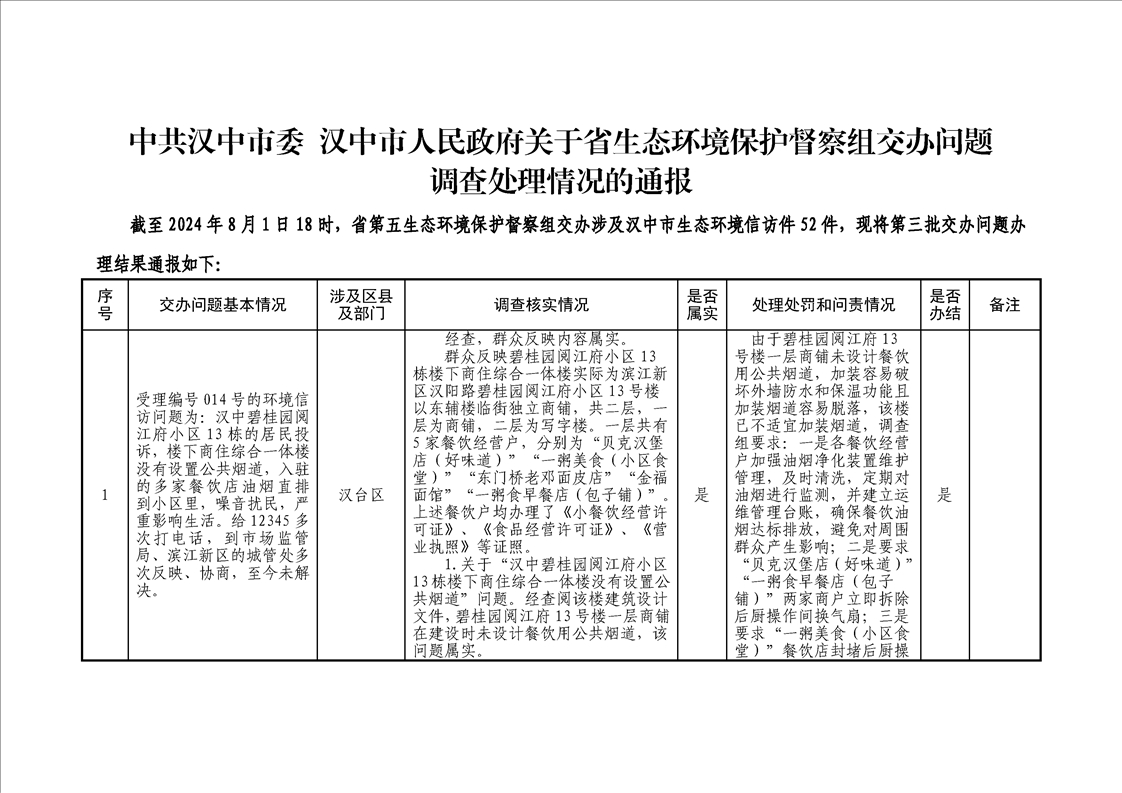 中共汉中市委 汉中市人民政府关于省生态环境保护督察组交办问题调查处理情况的通报(第三批)