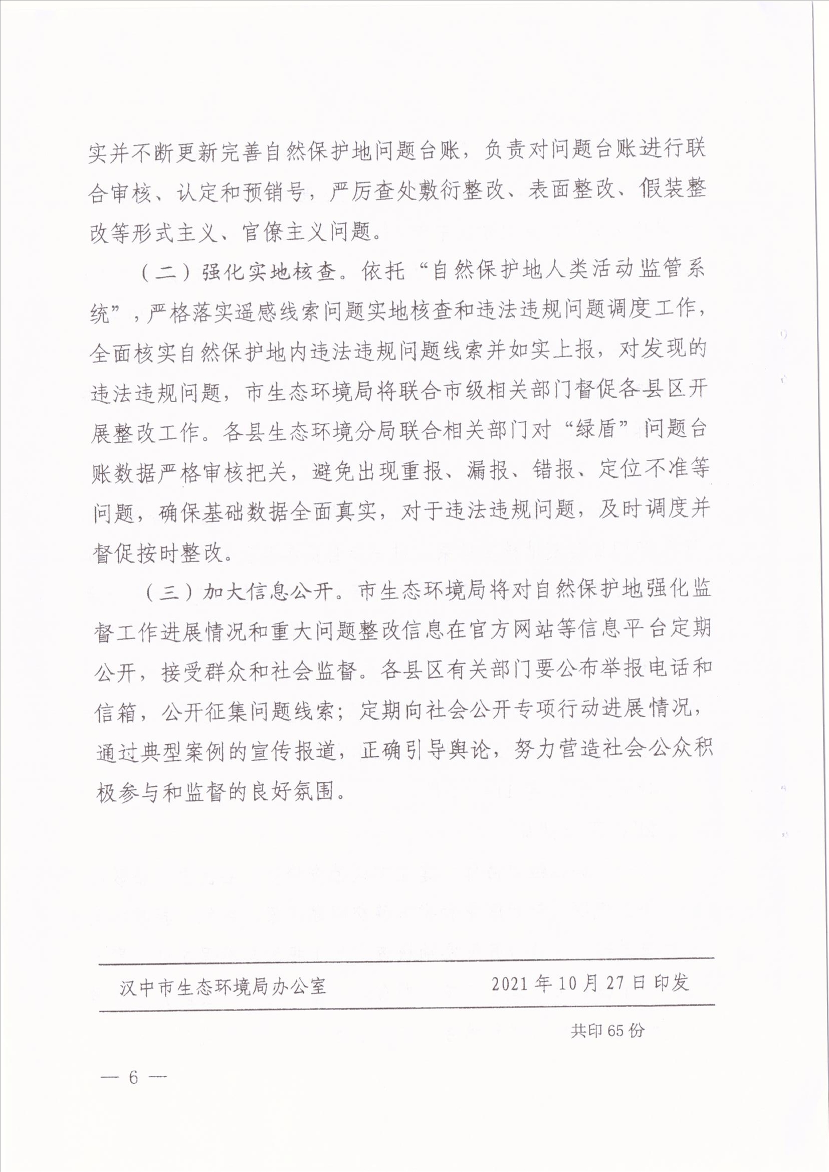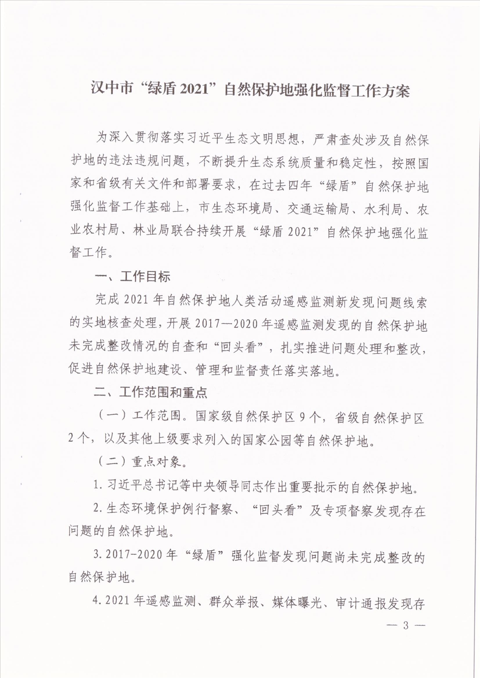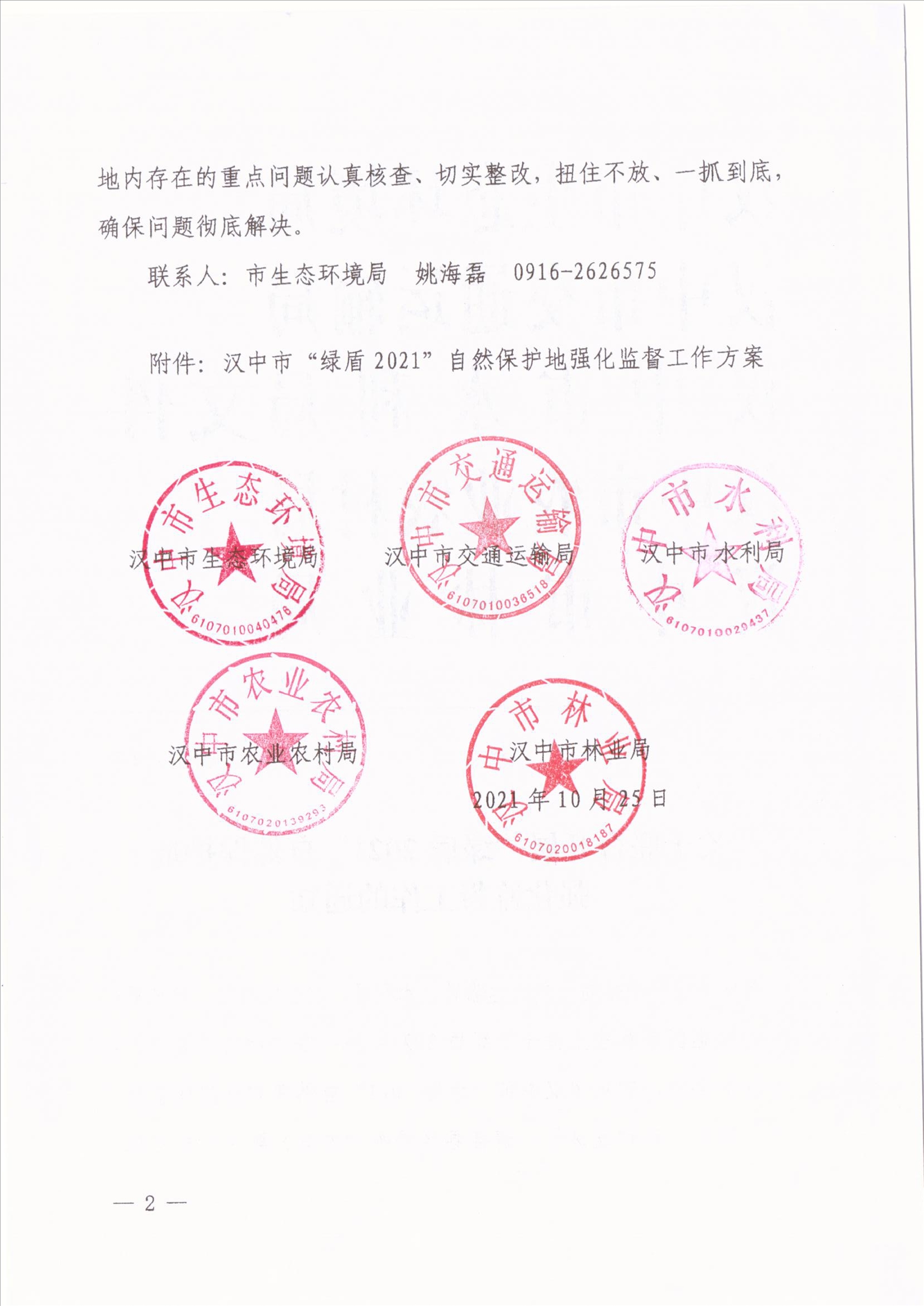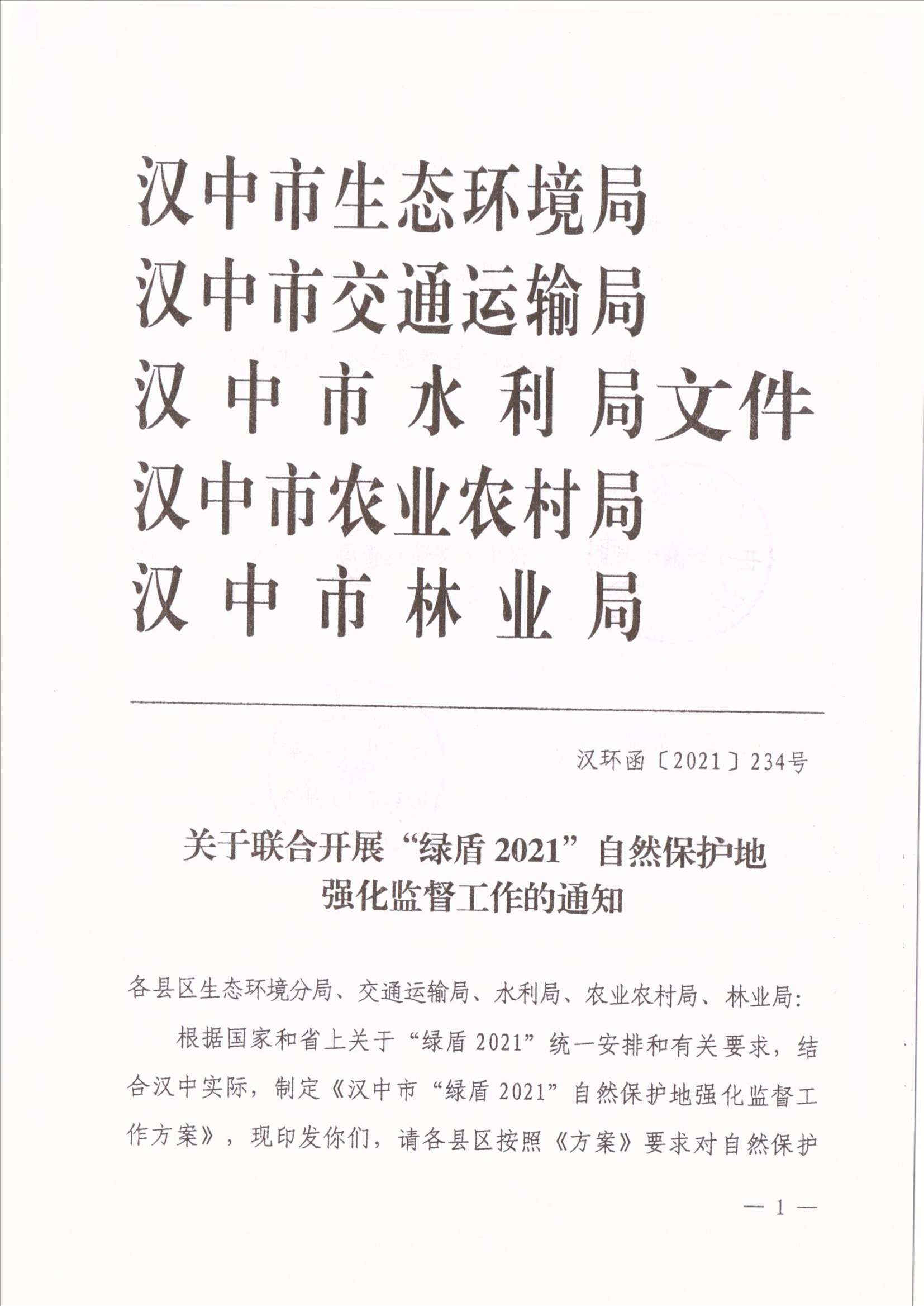 汉中市关于联合开展“绿盾2021”自然保护地强化监督工作的通知