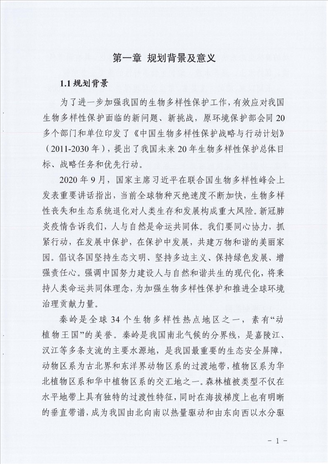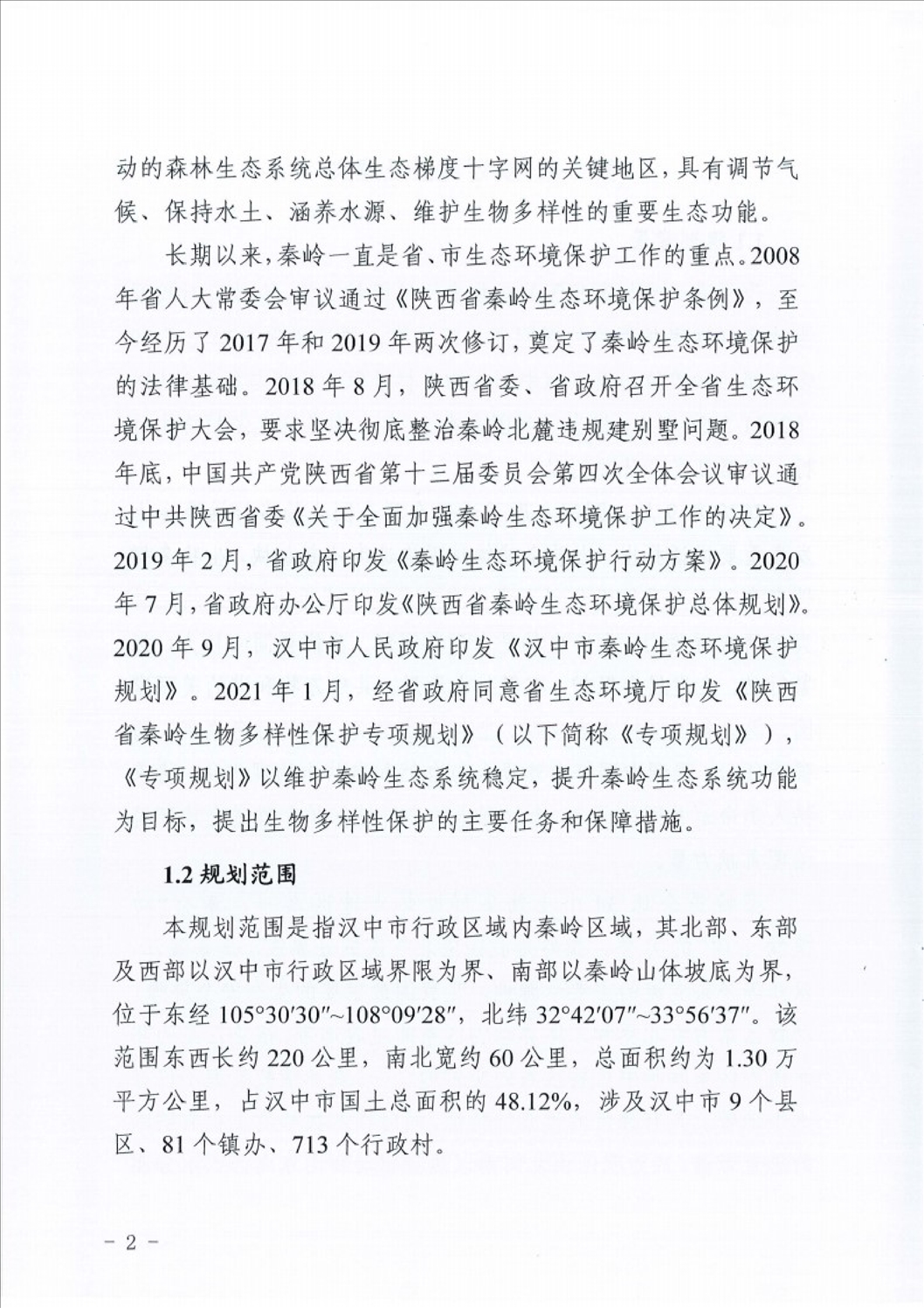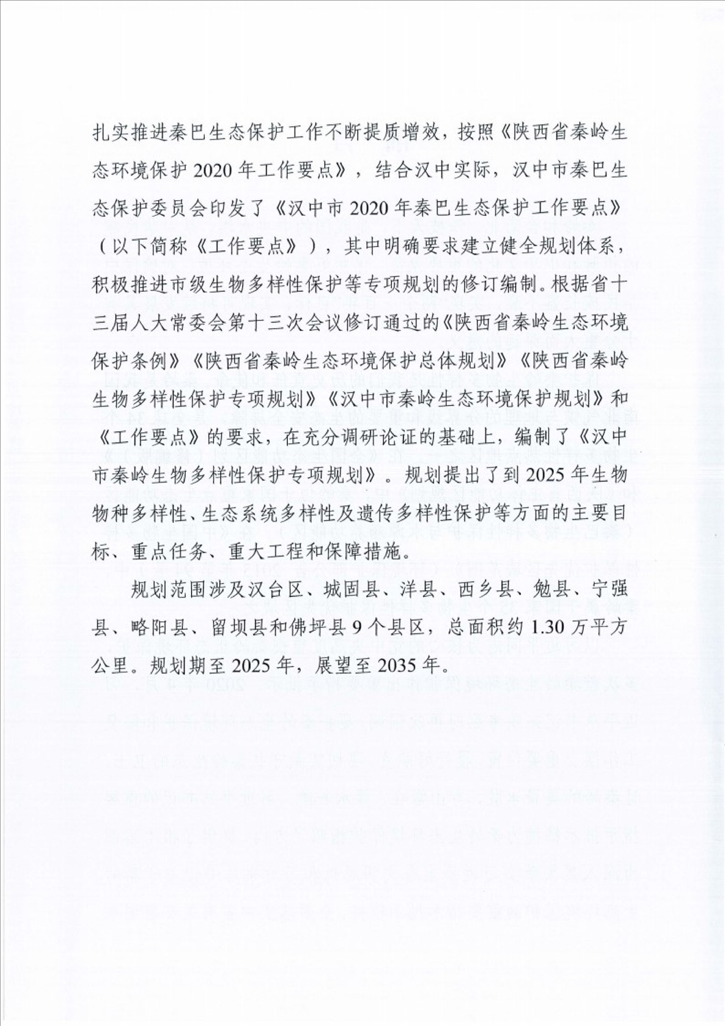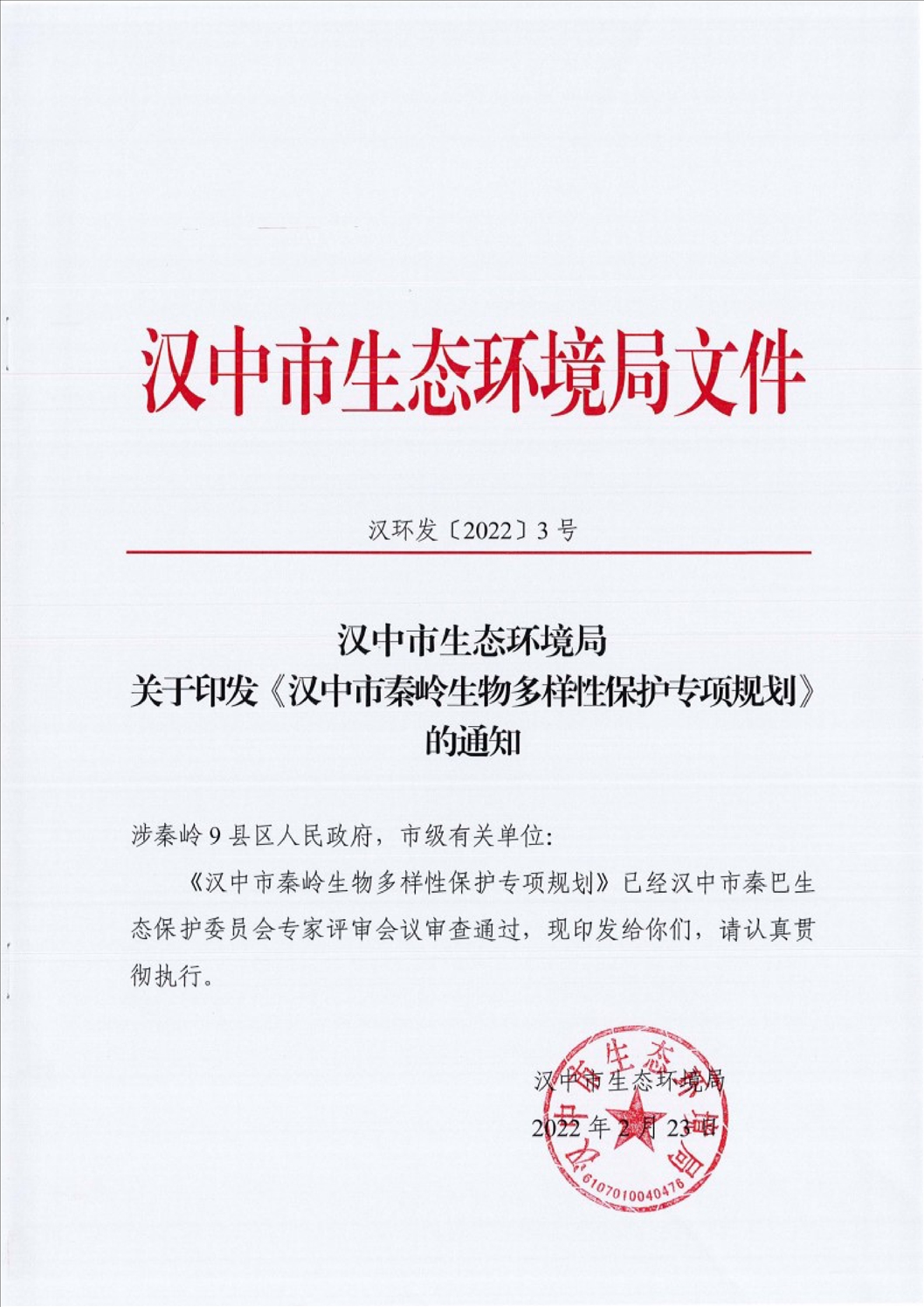 汉中市生态环境局关于印发《汉中市秦岭生物多样性保护专项规划》的通知
