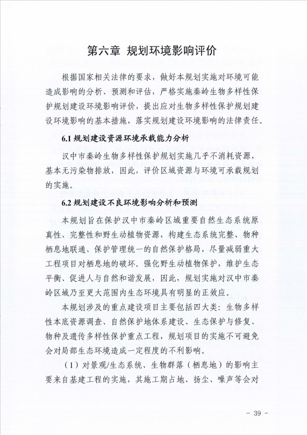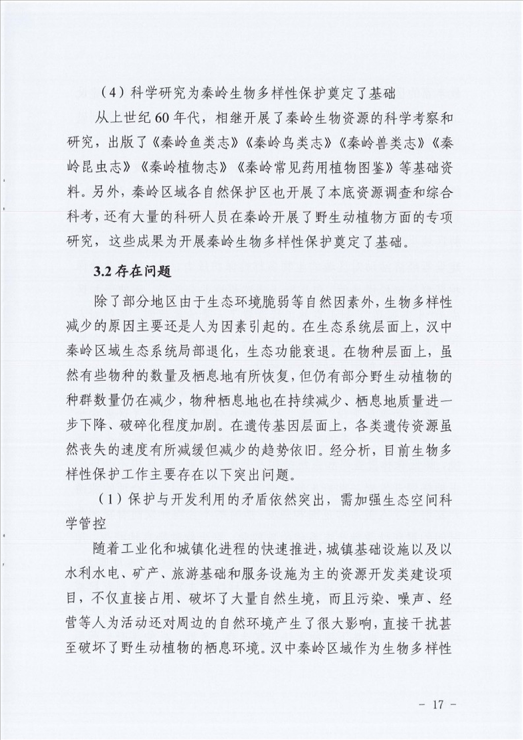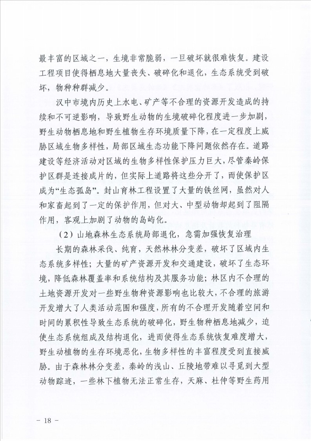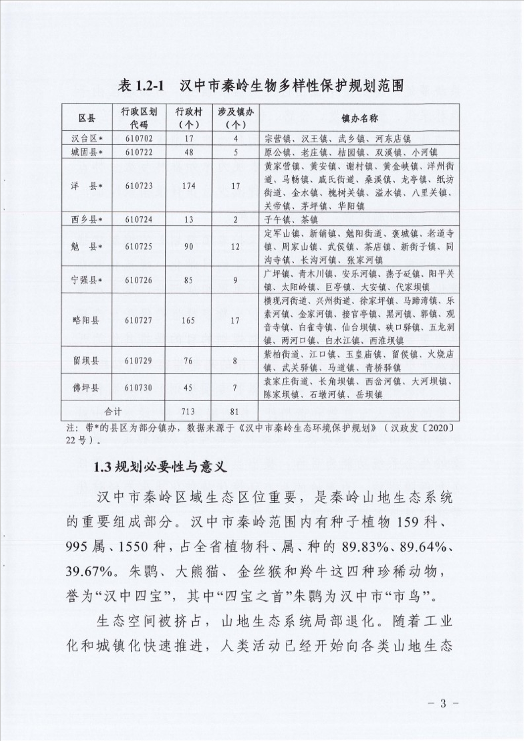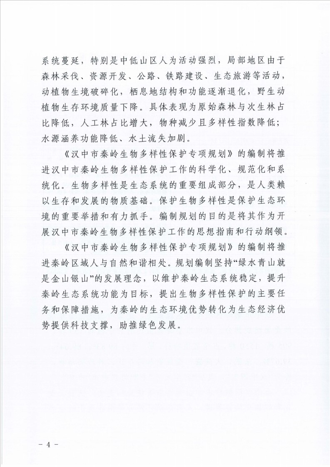 汉中市生态环境局关于印发《汉中市秦岭生物多样性保护专项规划》的通知