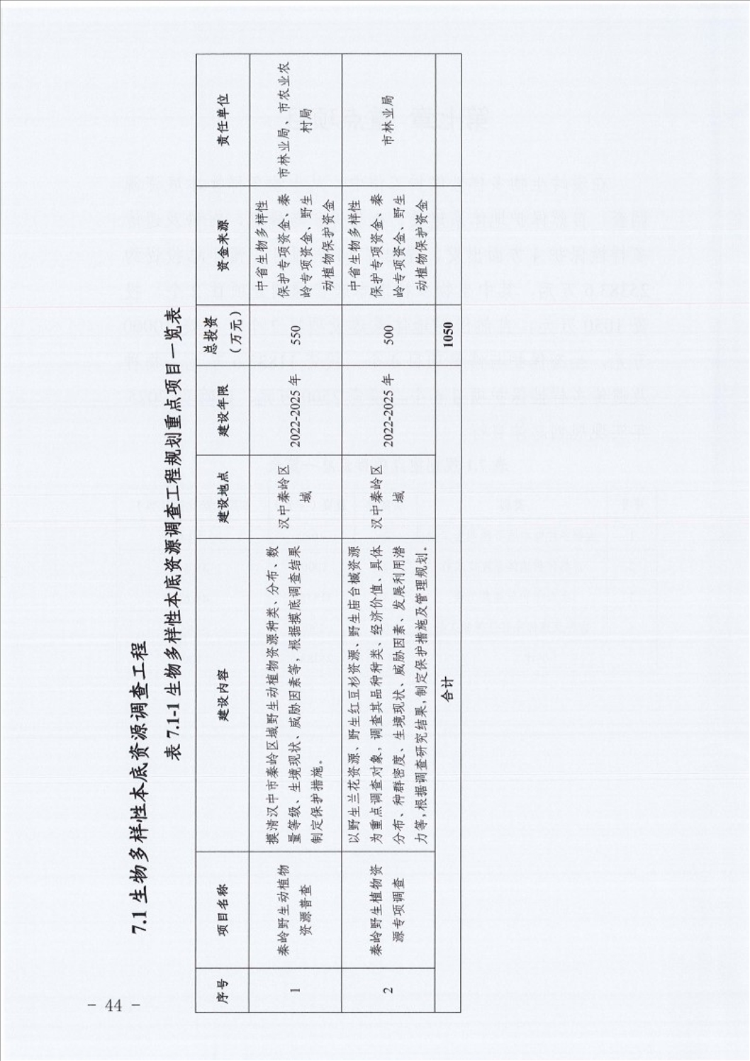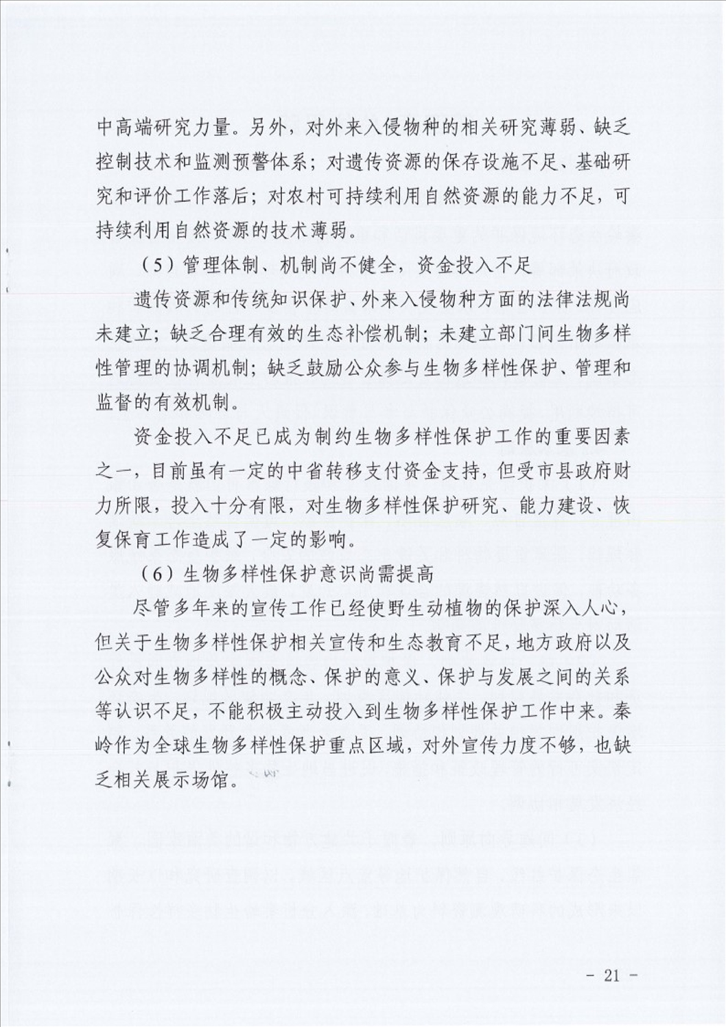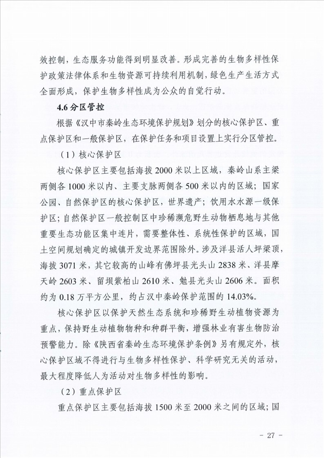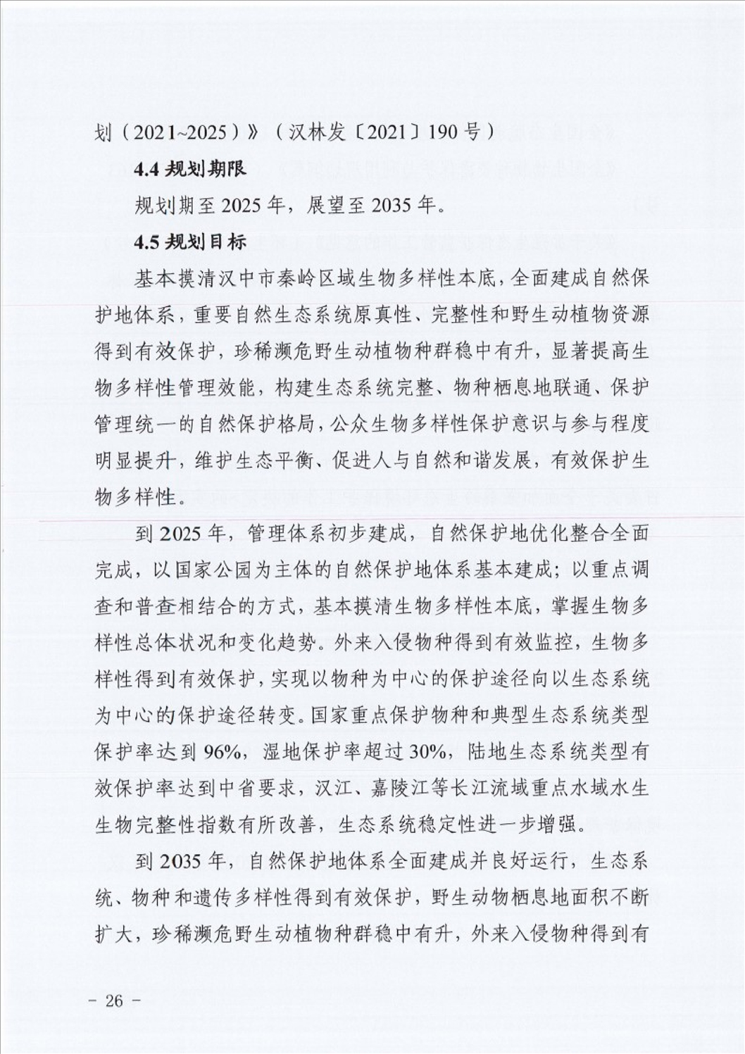 汉中市生态环境局关于印发《汉中市秦岭生物多样性保护专项规划》的通知